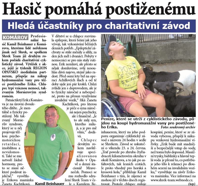 Výtěžek ze závodu bude věnován na nákup hydro-masážní vany pro postiženého
